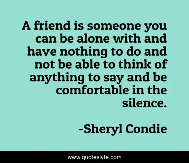 This page presents the quote "A friend is someone you can be alone with and have nothing to do and not be able to think of anything to say and be comfortable in the silence.". Author of this quote is Sheryl Condie. This quote is about friendship, times,.