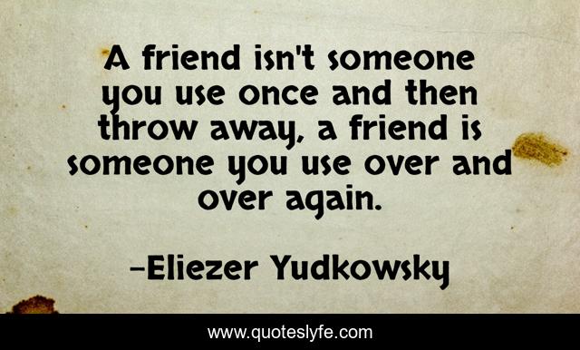 This page presents the quote "A friend isn't someone you use once and then throw away, a friend is someone you use over and over again.". Author of this quote is Eliezer Yudkowsky. This quote is about friends, friendship,.
