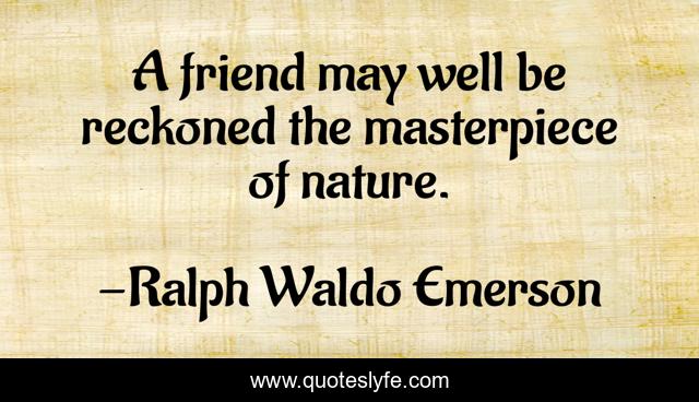 This page presents the quote "A friend may well be reckoned the masterpiece of nature.". Author of this quote is Ralph Waldo Emerson. This quote is about masterpiece, friendship, nature,.