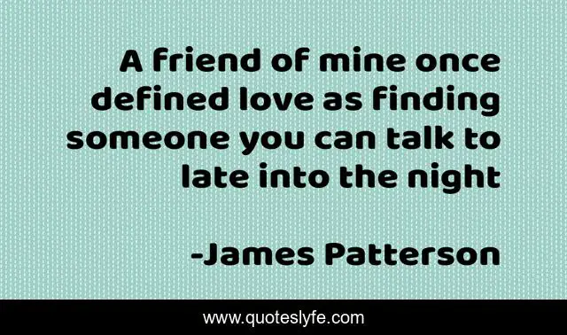 This page presents the quote "A friend of mine once defined love as finding someone you can talk to late into the night". Author of this quote is James Patterson. This quote is about love, affection,.