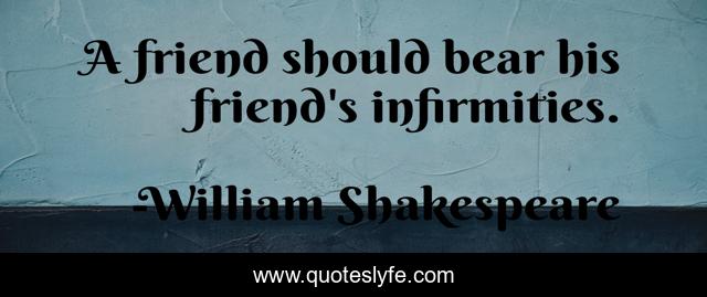 This page presents the quote "A friend should bear his friend's infirmities.". Author of this quote is William Shakespeare. .
