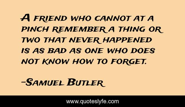 This page presents the quote "A friend who cannot at a pinch remember a thing or two that never happened is as bad as one who does not know how to forget.". Author of this quote is Samuel Butler. .