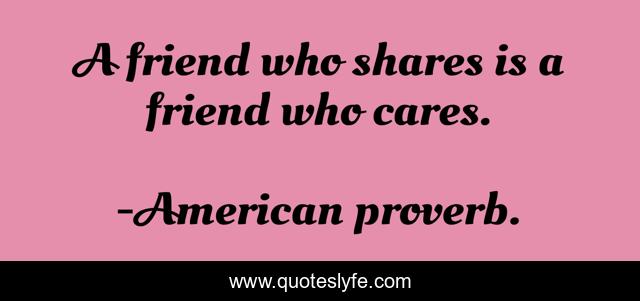 This page presents the quote "A friend who shares is a friend who cares.". Author of this quote is American proverb.. .