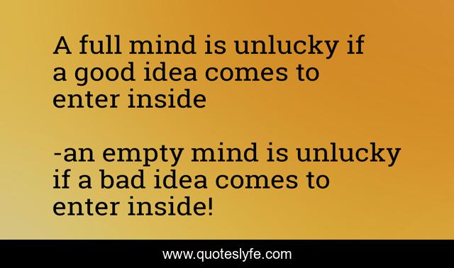 This page presents the quote "A full mind is unlucky if a good idea comes to enter inside". Author of this quote is an empty mind is unlucky if a bad idea comes to enter inside!. .