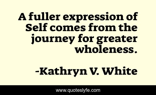 This page presents the quote "A fuller expression of Self comes from the journey for greater wholeness.". Author of this quote is Kathryn V. White. This quote is about journeys, self, journey-in-life, journey, expression, wholeness, journey-of-life,.