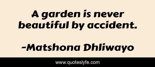 "Matshona Dhliwayo Quotes." Quoteslyfe.com, 2025. Fri. 05 Dec. 2025. <https://www.quoteslyfe.com/quote/A-garden-is-never-beautiful-by-accident-83735>.