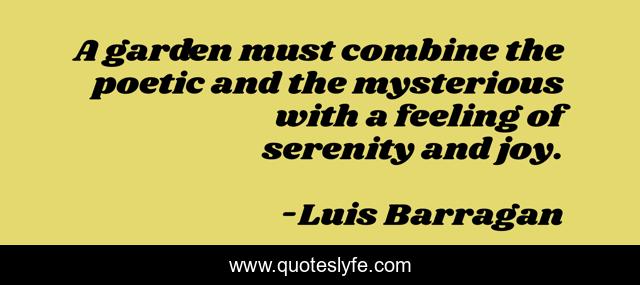 This page presents the quote "A garden must combine the poetic and the mysterious with a feeling of serenity and joy.". Author of this quote is Luis Barragan. This quote is about joy, garden, serenity,.