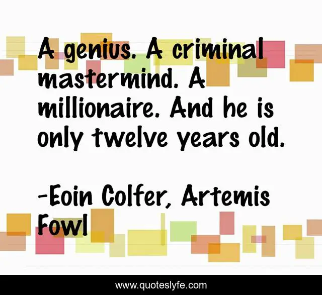 "Eoin Colfer, Artemis Fowl Quotes." Quoteslyfe.com, 2025. Tue. 09 Dec. 2025. <https://www.quoteslyfe.com/quote/A-genius-A-criminal-mastermind-A-millionaire-6339>.