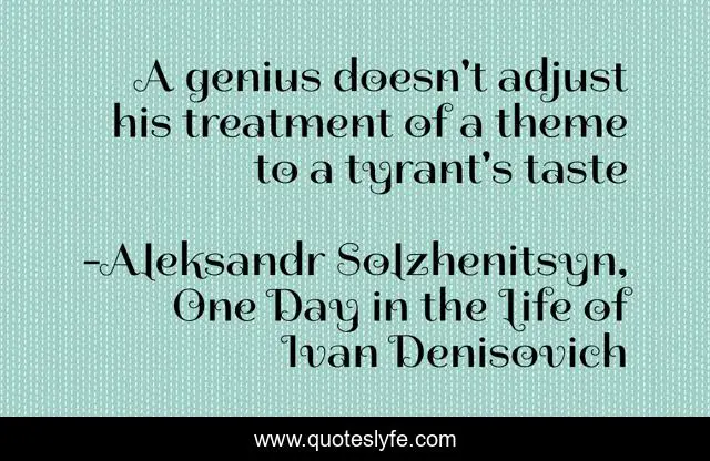 This page presents the quote "A genius doesn't adjust his treatment of a theme to a tyrant's taste". Author of this quote is Aleksandr Solzhenitsyn, One Day in the Life of Ivan Denisovich. .