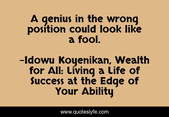 "Idowu Koyenikan, Wealth for All: Living a Life of Success at the Edge of Your Ability Quotes." Quoteslyfe.com, 2025. Fri. 05 Dec. 2025. <https://www.quoteslyfe.com/quote/A-genius-in-the-wrong-position-could-208945>.
