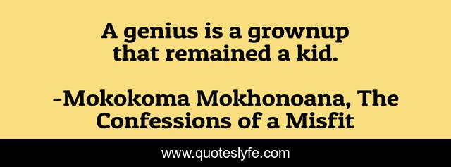 "Mokokoma Mokhonoana, The Confessions of a Misfit Quotes." Quoteslyfe.com, 2025. Mon. 08 Dec. 2025. <https://www.quoteslyfe.com/quote/A-genius-is-a-grownup-that-remained-230893>.