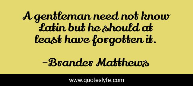 This page presents the quote "A gentleman need not know Latin but he should at least have forgotten it.". Author of this quote is Brander Matthews. .