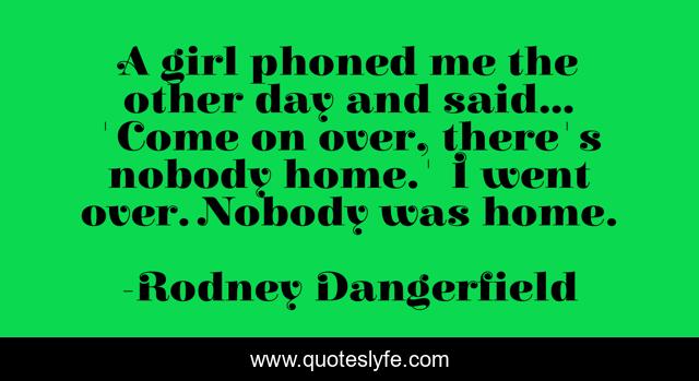 This page presents the quote "A girl phoned me the other day and said... 'Come on over, there's nobody home.' I went over. Nobody was home.". Author of this quote is Rodney Dangerfield. This quote is about me, girl, day,.