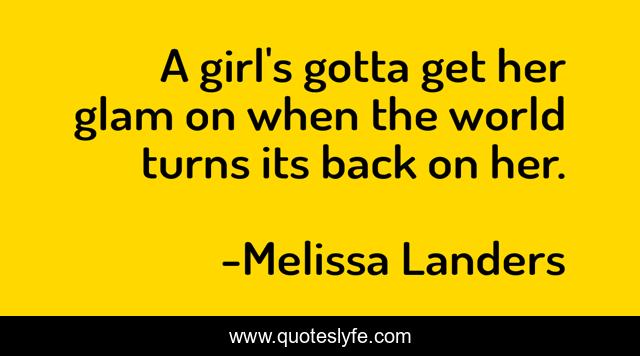 This page presents the quote "A girl's gotta get her glam on when the world turns its back on her.". Author of this quote is Melissa Landers. This quote is about world, girl, glam,.