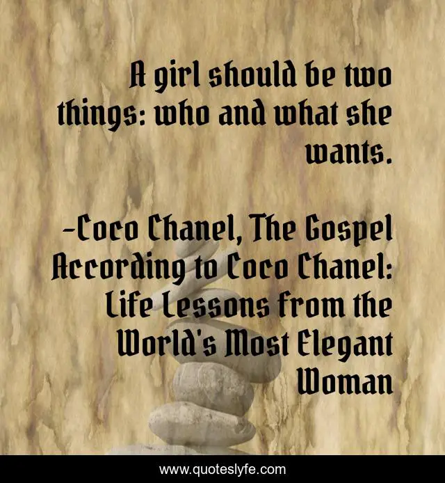 "Coco Chanel, The Gospel According to Coco Chanel: Life Lessons from the World's Most Elegant Woman Quotes." Quoteslyfe.com, 2025. Sat. 06 Dec. 2025. <https://www.quoteslyfe.com/quote/A-girl-should-be-two-things-who-58386>.