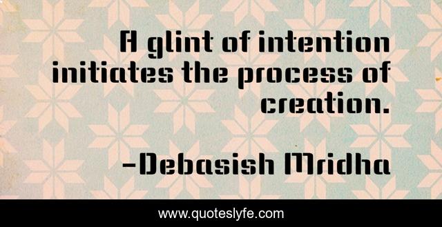 This page presents the quote "A glint of intention initiates the process of creation.". Author of this quote is Debasish Mridha. This quote is about philosophy, intention, debasish-mridha, creation, process-of-creation, quotes, debasish-mridha-md, inspirational, enthusiasm,.