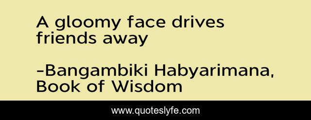 "Bangambiki Habyarimana, Book of Wisdom Quotes." Quoteslyfe.com, 2025. Sat. 06 Dec. 2025. <https://www.quoteslyfe.com/quote/A-gloomy-face-drives-friends-away-126662>.