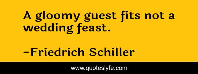 This page presents the quote "A gloomy guest fits not a wedding feast.". Author of this quote is Friedrich Schiller. This quote is about gloomy, feast, guest,.