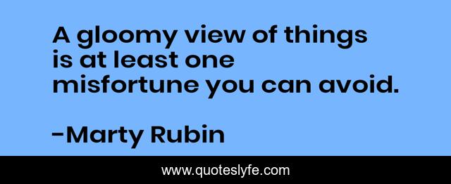 This page presents the quote "A gloomy view of things is at least one misfortune you can avoid.". Author of this quote is Marty Rubin. This quote is about behaviour, attitude, misfortune,.