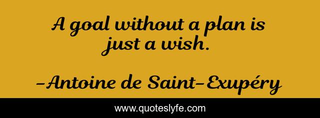 This page presents the quote "A goal without a plan is just a wish.". Author of this quote is Antoine de Saint-Exupéry. This quote is about enthusiasm, planning, humor, inspirational, enterprise,.