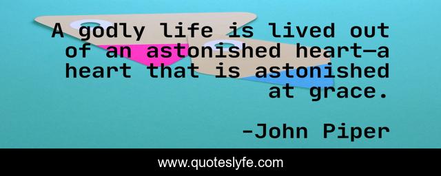 This page presents the quote "A godly life is lived out of an astonished heart—a heart that is astonished at grace.". Author of this quote is John Piper. This quote is about godliness, astonishment, grace,.
