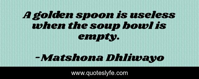"Matshona Dhliwayo Quotes." Quoteslyfe.com, 2025. Fri. 05 Dec. 2025. <https://www.quoteslyfe.com/quote/A-golden-spoon-is-useless-when-the-98457>.