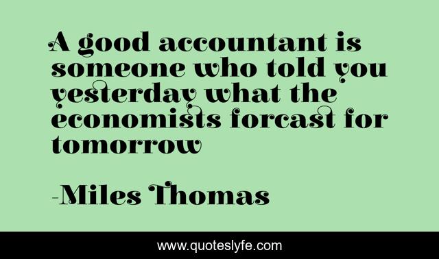 This page presents the quote "A good accountant is someone who told you yesterday what the economists forcast for tomorrow". Author of this quote is Miles Thomas. .