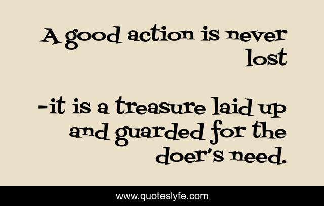 This page presents the quote "A good action is never lost". Author of this quote is it is a treasure laid up and guarded for the doer’s need.. .