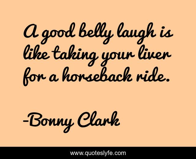 This page presents the quote "A good belly laugh is like taking your liver for a horseback ride.". Author of this quote is Bonny Clark. .