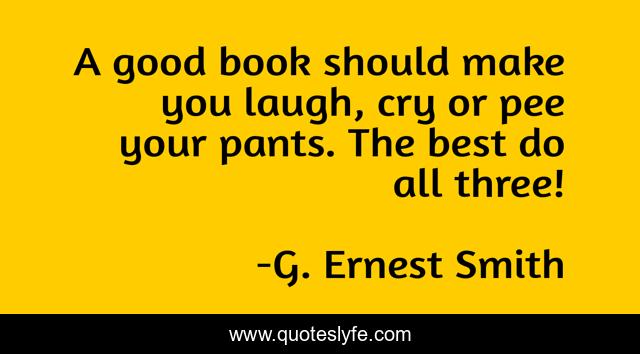 This page presents the quote "A good book should make you laugh, cry or pee your pants. The best do all three!". Author of this quote is G. Ernest Smith. This quote is about alternate-reality, nuclear-submarine, navy, military, spanish-armada, thriller,.
