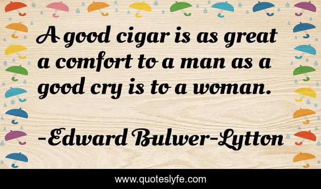 This page presents the quote "A good cigar is as great a comfort to a man as a good cry is to a woman.". Author of this quote is Edward Bulwer-Lytton. This quote is about men, women,.