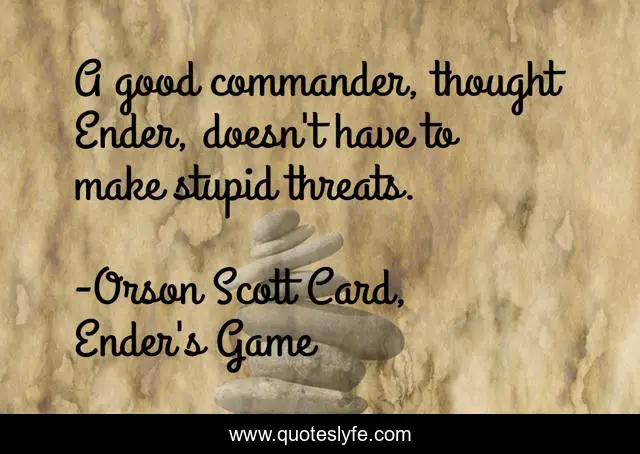 This page presents the quote "A good commander, thought Ender, doesn't have to make stupid threats.". Author of this quote is Orson Scott Card, Ender's Game. .