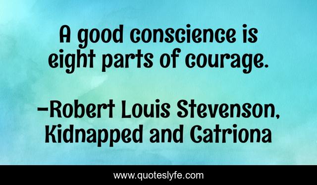 This page presents the quote "A good conscience is eight parts of courage.". Author of this quote is Robert Louis Stevenson, Kidnapped and Catriona. This quote is about conscience, courage,.