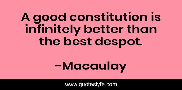 This page presents the quote "A good constitution is infinitely better than the best despot.". Author of this quote is Macaulay. .