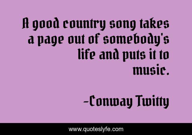 This page presents the quote "A good country song takes a page out of somebody's life and puts it to music.". Author of this quote is Conway Twitty. This quote is about life, good, page,.