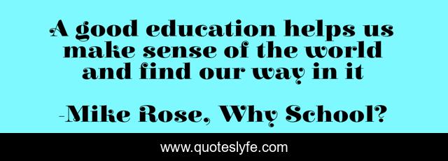 "Mike Rose, Why School? Quotes." Quoteslyfe.com, 2025. Sat. 06 Dec. 2025. <https://www.quoteslyfe.com/quote/A-good-education-helps-us-make-sense-33651>.