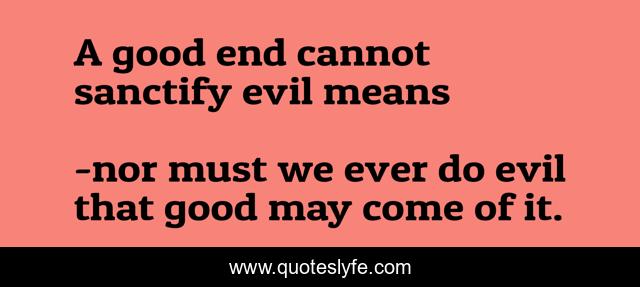 "nor must we ever do evil that good may come of it. Quotes." Quoteslyfe.com, 2025. Fri. 05 Dec. 2025. <https://www.quoteslyfe.com/quote/A-good-end-cannot-sanctify-evil-means-154093>.