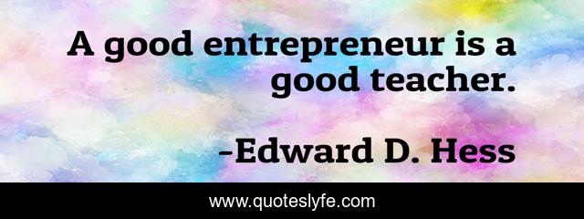 This page presents the quote "A good entrepreneur is a good teacher.". Author of this quote is Edward D. Hess. This quote is about business, entrepreneurship,.