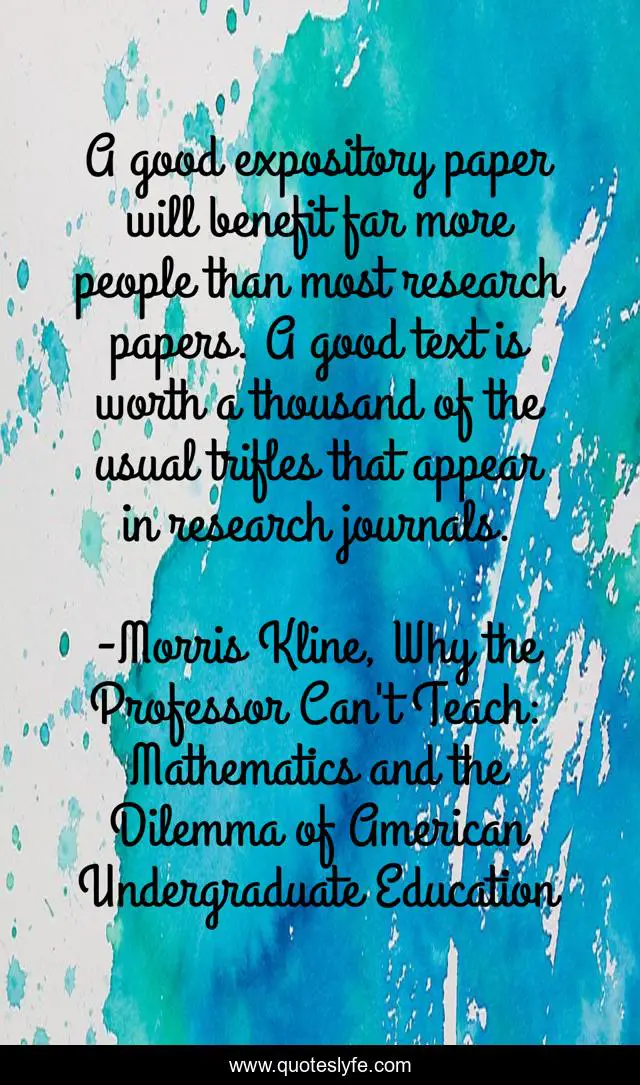 "Morris Kline, Why the Professor Can't Teach: Mathematics and the Dilemma of American Undergraduate Education Quotes." Quoteslyfe.com, 2025. Fri. 05 Dec. 2025. <https://www.quoteslyfe.com/quote/A-good-expository-paper-will-benefit-far-163018>.