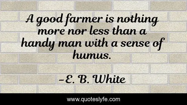This page presents the quote "A good farmer is nothing more nor less than a handy man with a sense of humus.". Author of this quote is E. B. White. This quote is about nothing, man, farmer,.
