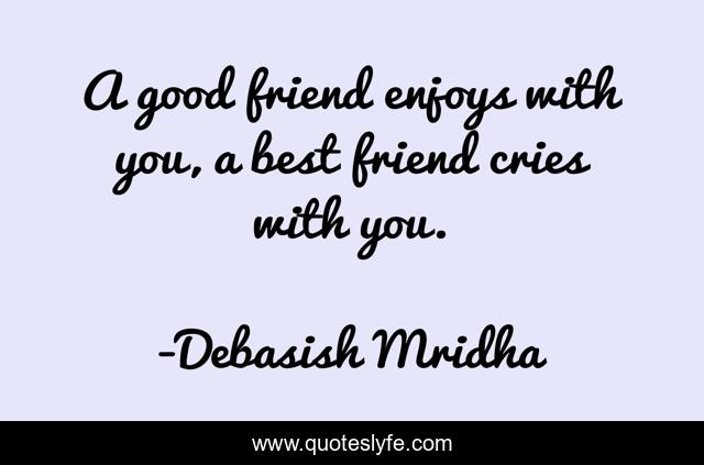 This page presents the quote "A good friend enjoys with you, a best friend cries with you.". Author of this quote is Debasish Mridha. This quote is about life, love, knowledge, inspirational, intelligence, philosophy, wisdom, quotes, affection,.