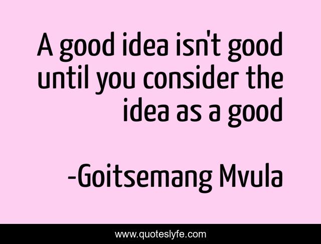 This page presents the quote "A good idea isn't good until you consider the idea as a good". Author of this quote is Goitsemang Mvula. .