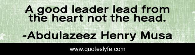 This page presents the quote "A good leader lead from the heart not the head.". Author of this quote is Abdulazeez Henry Musa. .