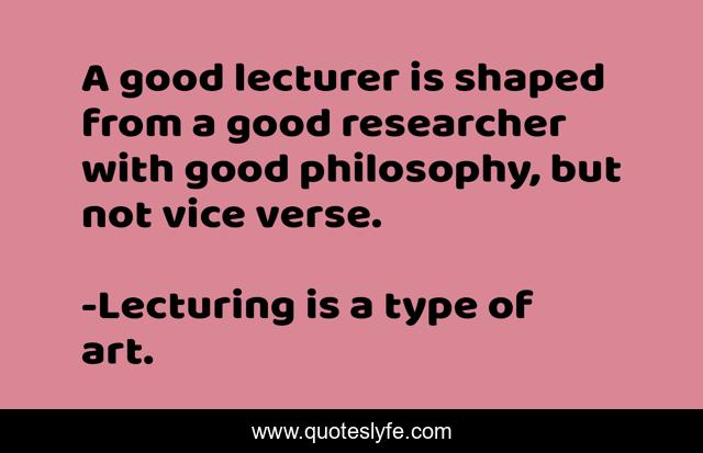 This page presents the quote "A good lecturer is shaped from a good researcher with good philosophy, but not vice verse.". Author of this quote is Lecturing is a type of art.. .