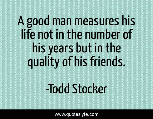 This page presents the quote "A good man measures his life not in the number of his years but in the quality of his friends.". Author of this quote is Todd Stocker. This quote is about friendship, confidence, positive, motivational, birthday, optimistic, inspirational, enthusiasm, friends,.