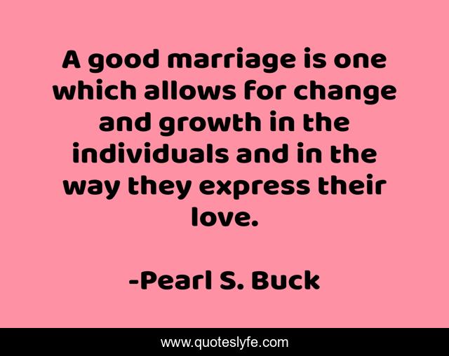This page presents the quote "A good marriage is one which allows for change and growth in the individuals and in the way they express their love.". Author of this quote is Pearl S. Buck. .