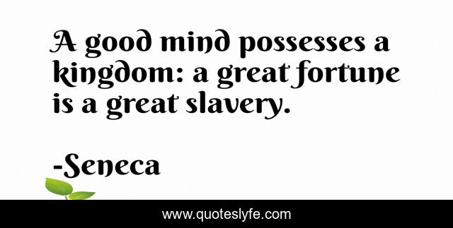 This page presents the quote "A good mind possesses a kingdom: a great fortune is a great slavery.". Author of this quote is Seneca. .