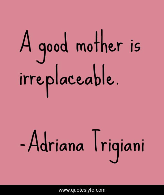 "Adriana Trigiani Quotes." Quoteslyfe.com, 2025. Sat. 06 Dec. 2025. <https://www.quoteslyfe.com/quote/A-good-mother-is-irreplaceable-254011>.