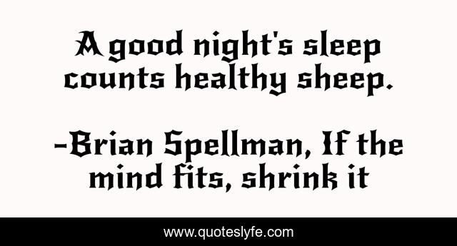 "Brian Spellman, If the mind fits, shrink it Quotes." Quoteslyfe.com, 2025. Tue. 09 Dec. 2025. <https://www.quoteslyfe.com/quote/A-good-night-s-sleep-counts-healthy-257536>.