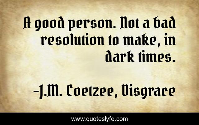 This page presents the quote "A good person. Not a bad resolution to make, in dark times.". Author of this quote is J.M. Coetzee, Disgrace. This quote is about motivation, goodness,.